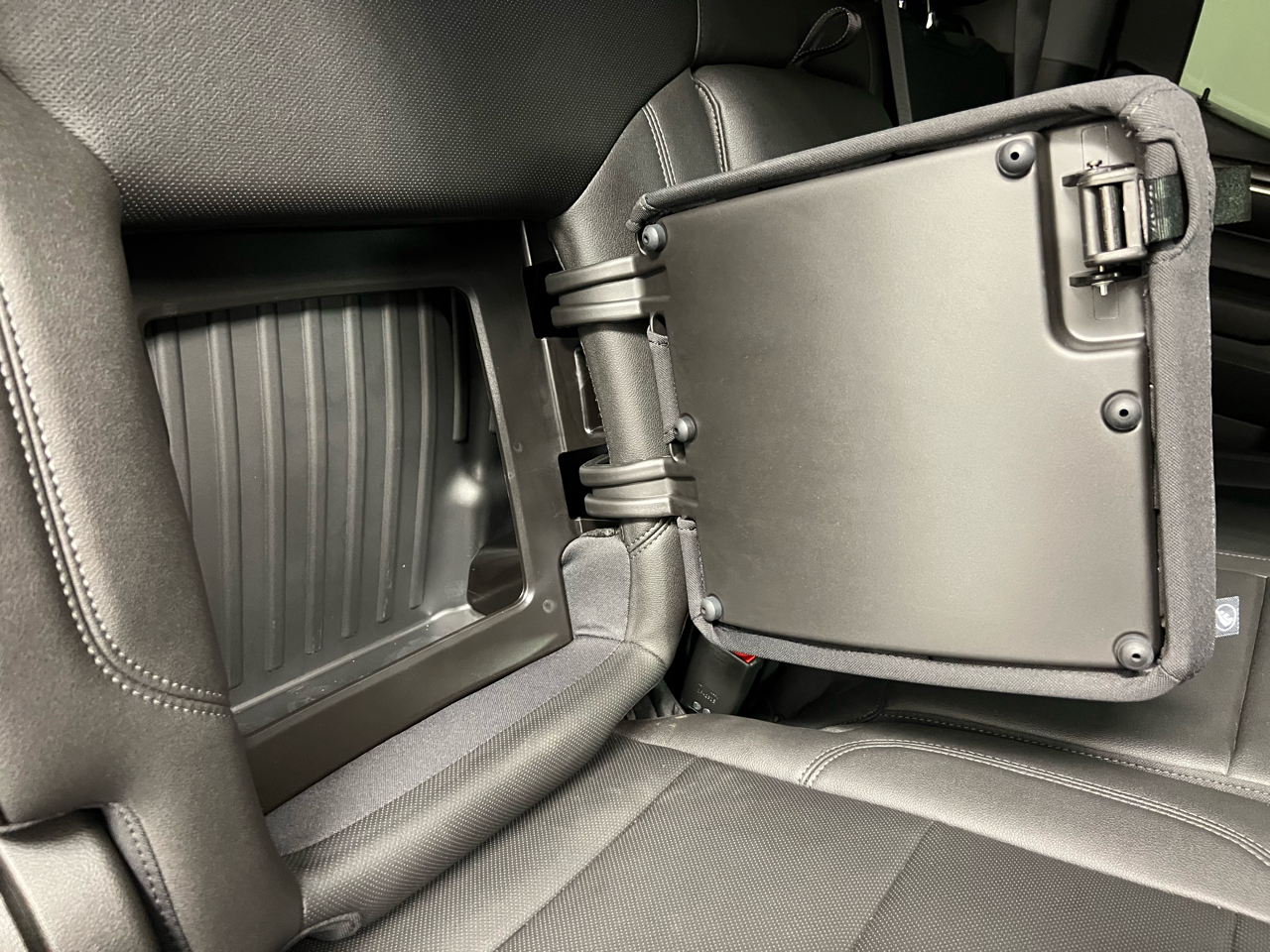 • Seat, Up-level Rear with Storage Package, 60/40 folding bench for Crew Cab models, includes full-length bench seat, seatback storage on left and right side, center fold out armrest with 2 cupholders, full cab width under-seat storage, (includes child seat top tether anchor)